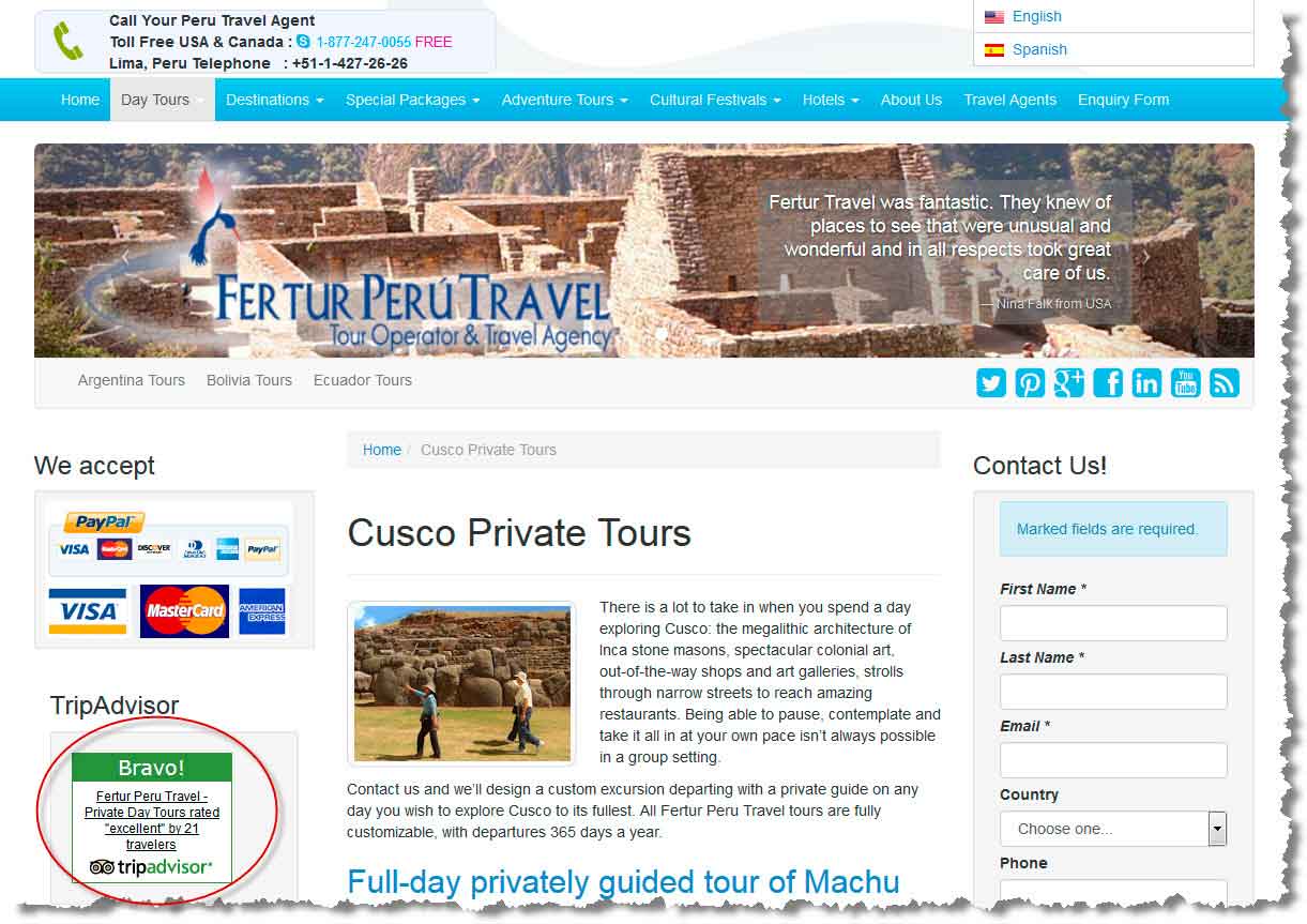 Fertur Perú Travel recibió la Insignia Bravo de TripAdvisor